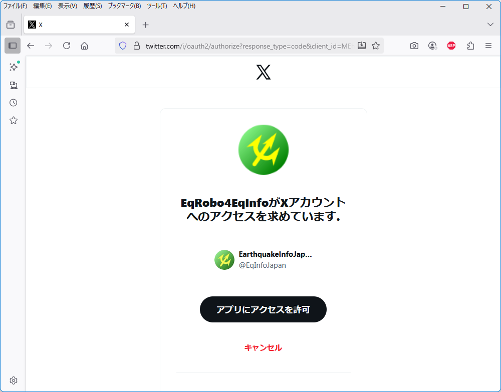 - ログインした状態で、自分のTwitterアカウントのページに遷移します。